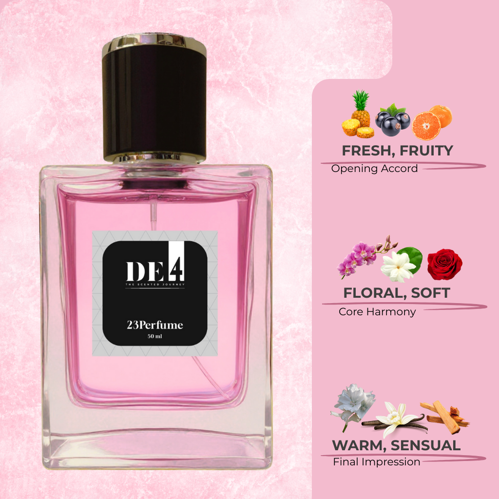 A dazzling blend of fruity brightness and floral elegance – bold, sophisticated, and effortlessly feminine.