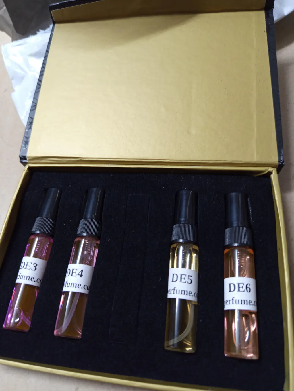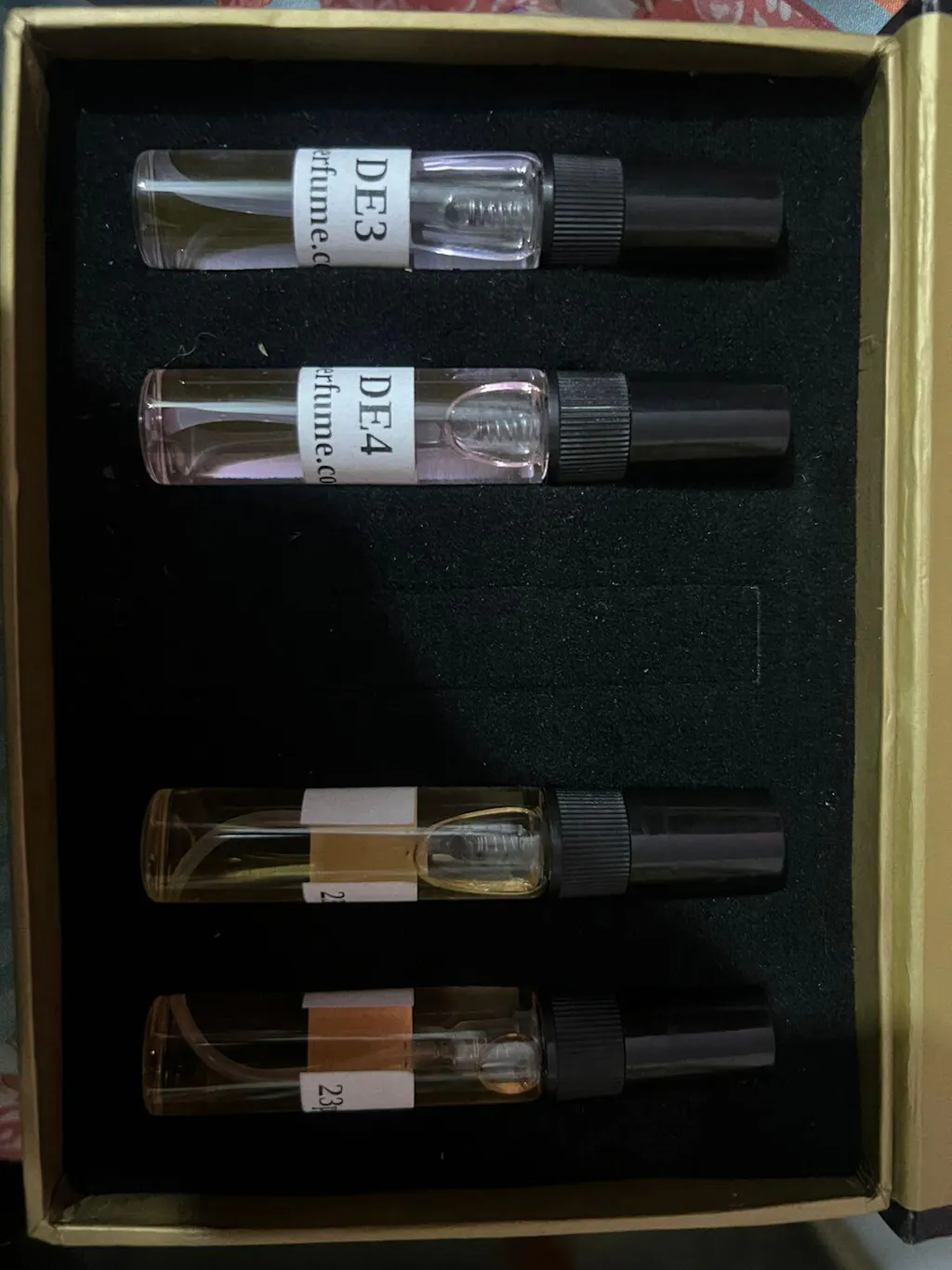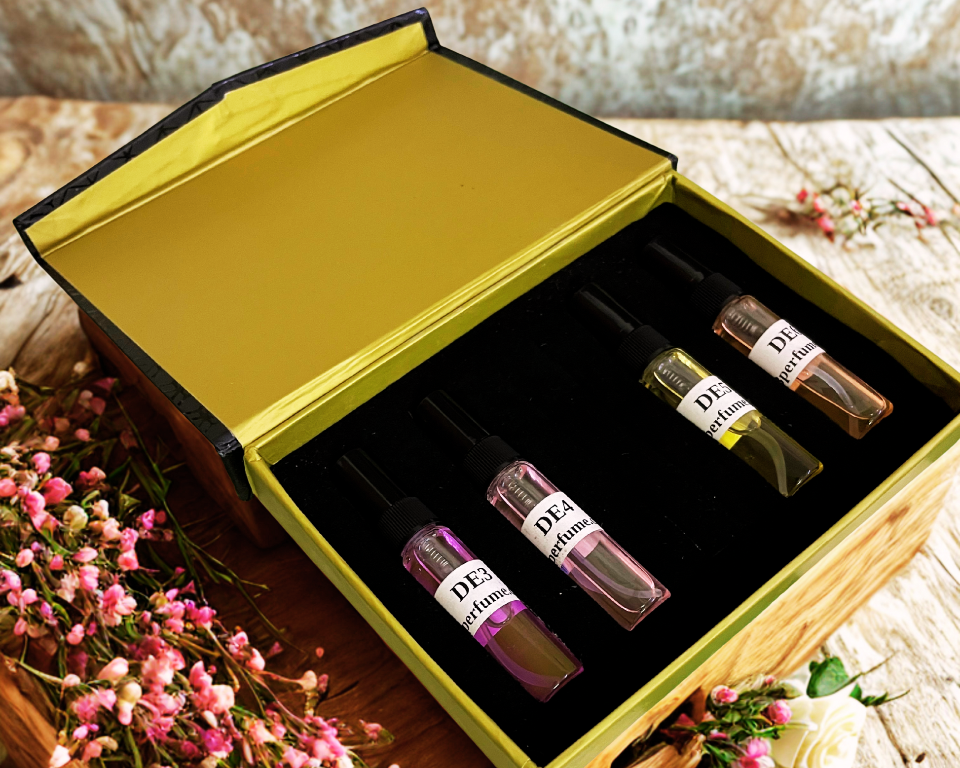 ✔ Four premium perfumes in travel-friendly 5ml bottles